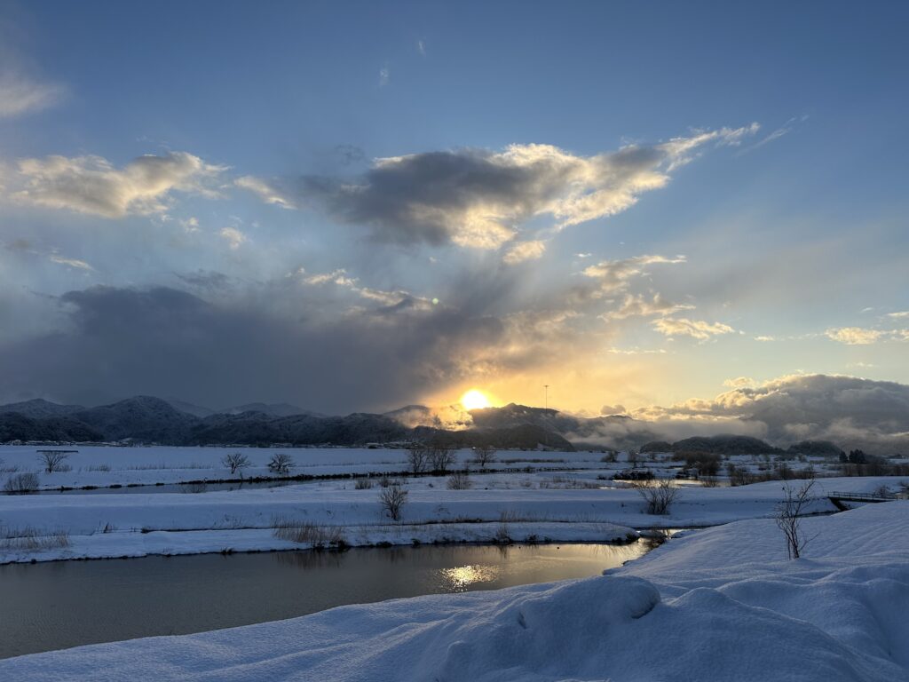 冬の早朝、豊岡はいっそう空気が澄みわたり、 ひと息つくだけで大自然の気配を感じられます。